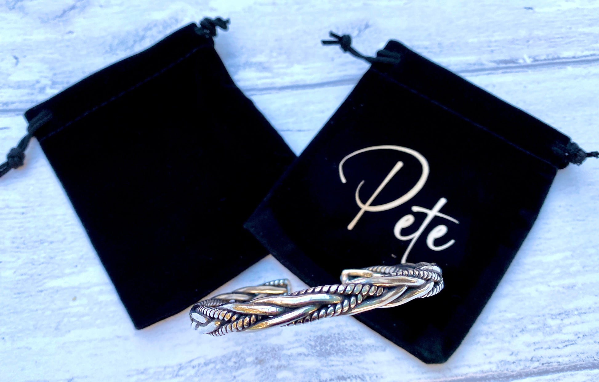The bangle is sent in a soft, brushed, velvet pouch for presentation. The pouch can then be left plain or personalised with a name making a lovely gift.